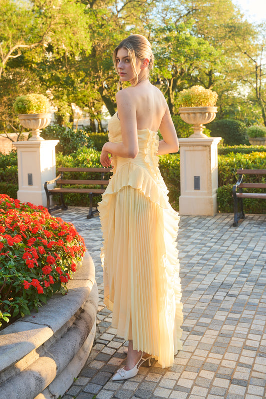 Aurora Pleated Gown – Buttercream Yell